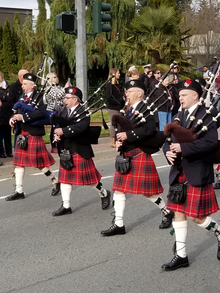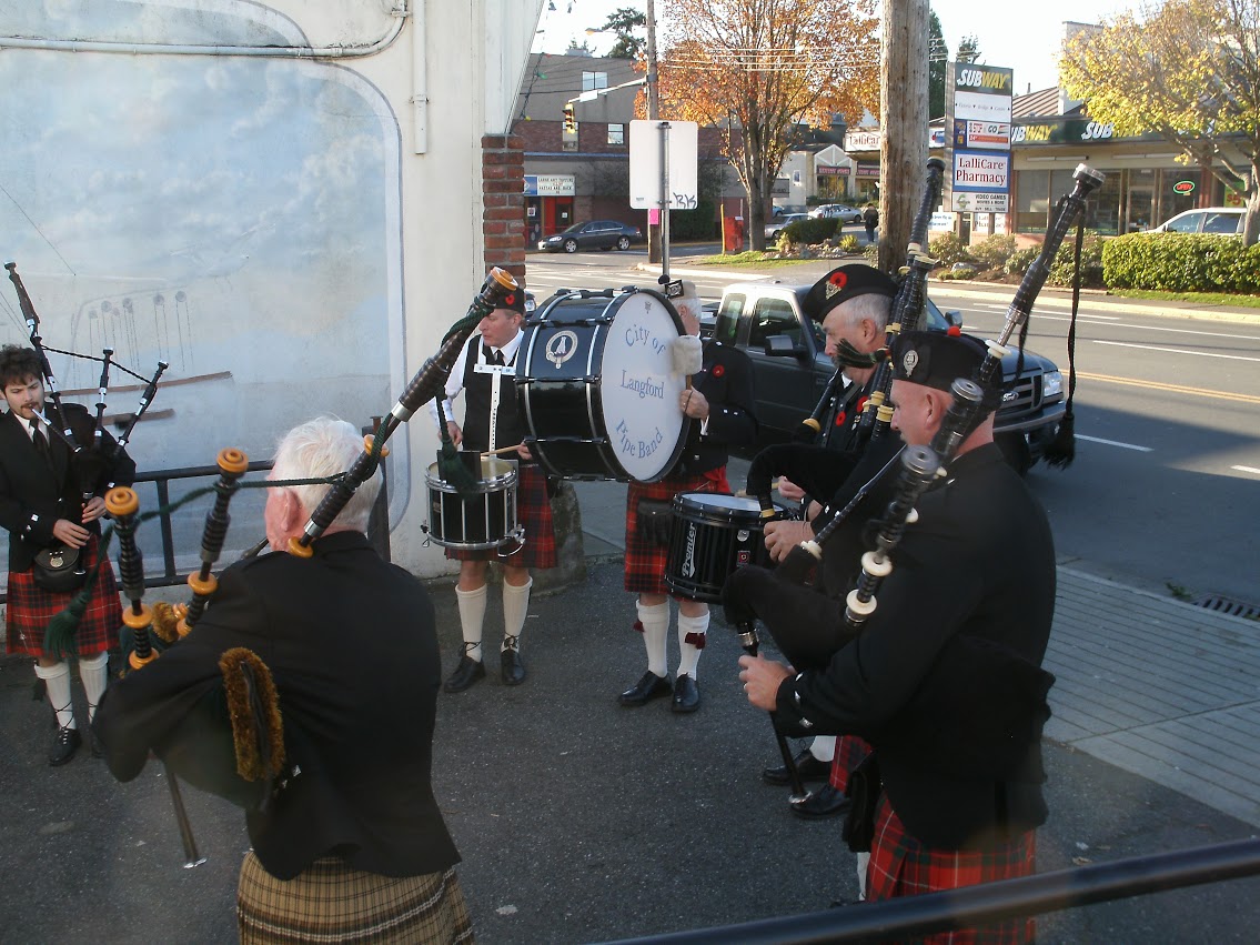 CCPD proudly participates in the Langford Legion's Rememberance Day ceremony, marching from the Legion to the Cenotaph and back. We also try to visit as many legions and halls that recognise the day, often playing a few sets at the Eagles Hall.