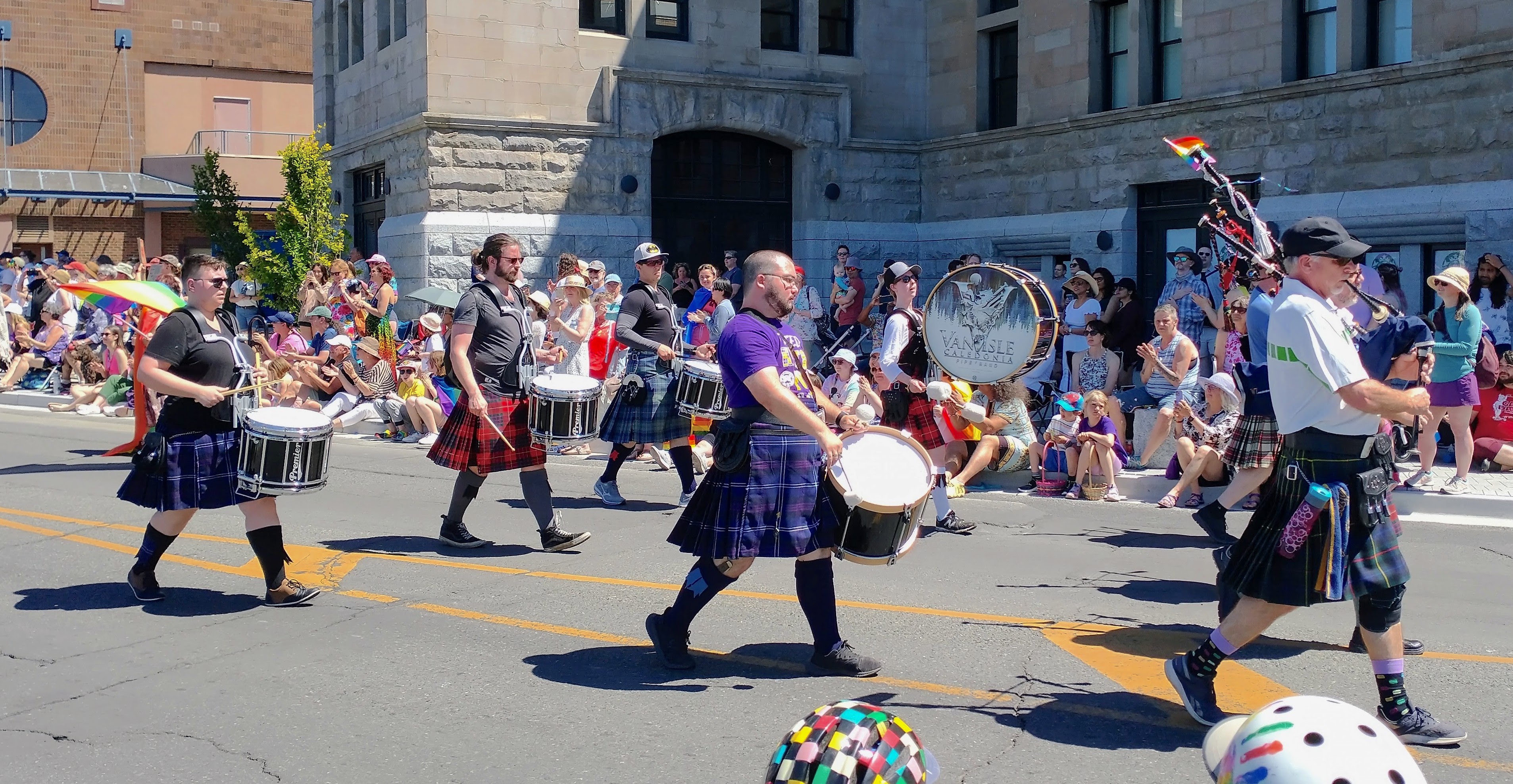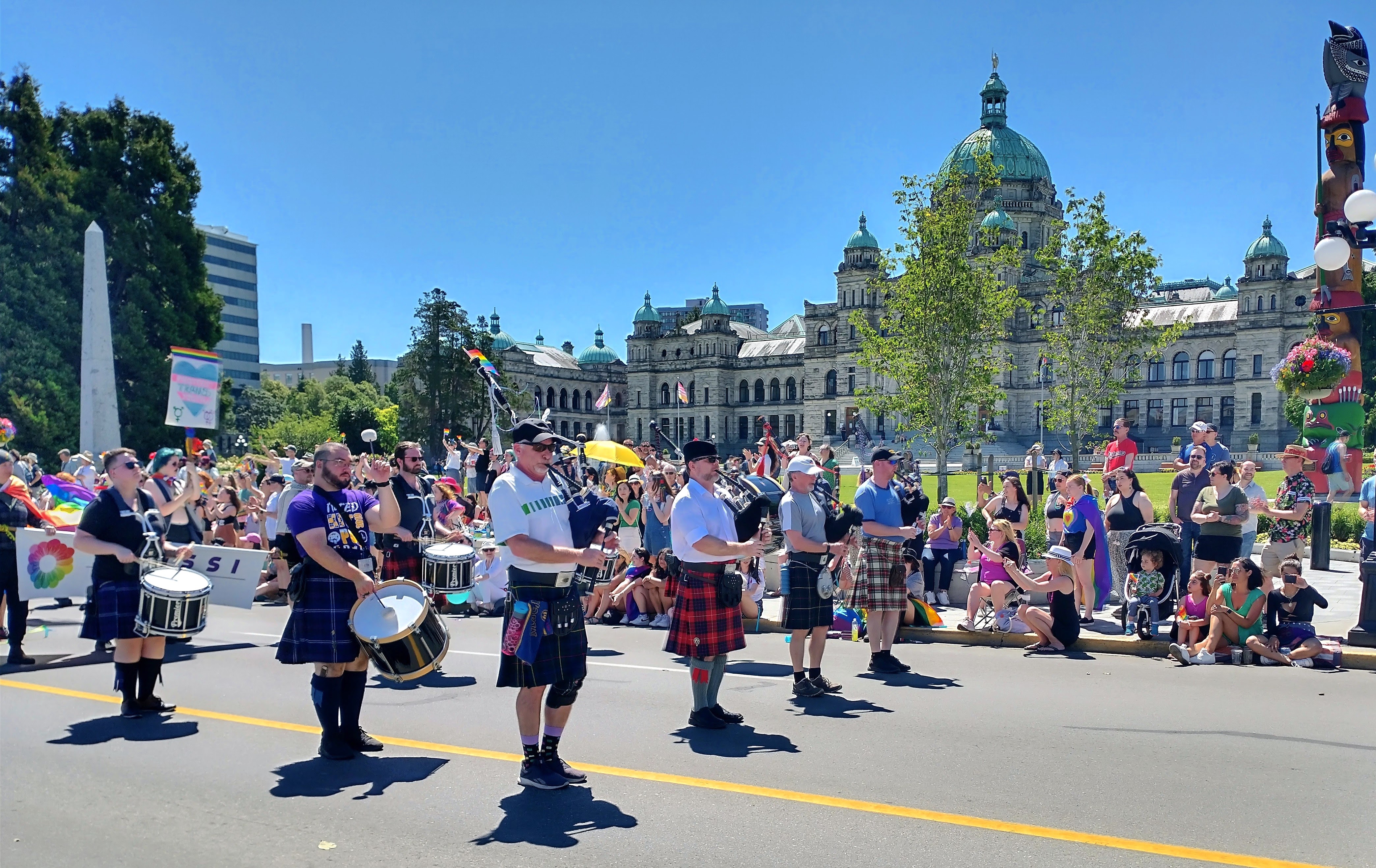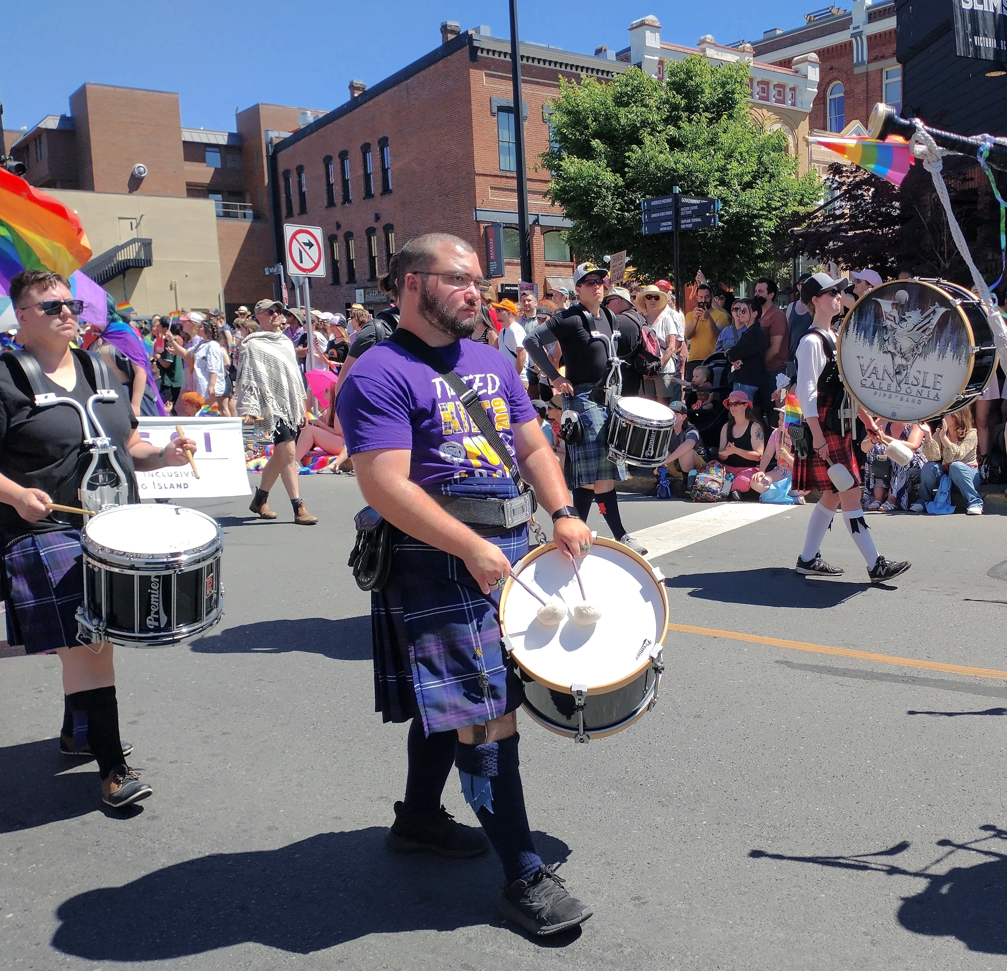 The Victoria pride parade is a celebration and recognition of LGBTQ+ folks and their fight for equality. CCPD happily joined the celebration in informal dress, allowing personal kilts and light clothing to combat Victoria's hot June weather!