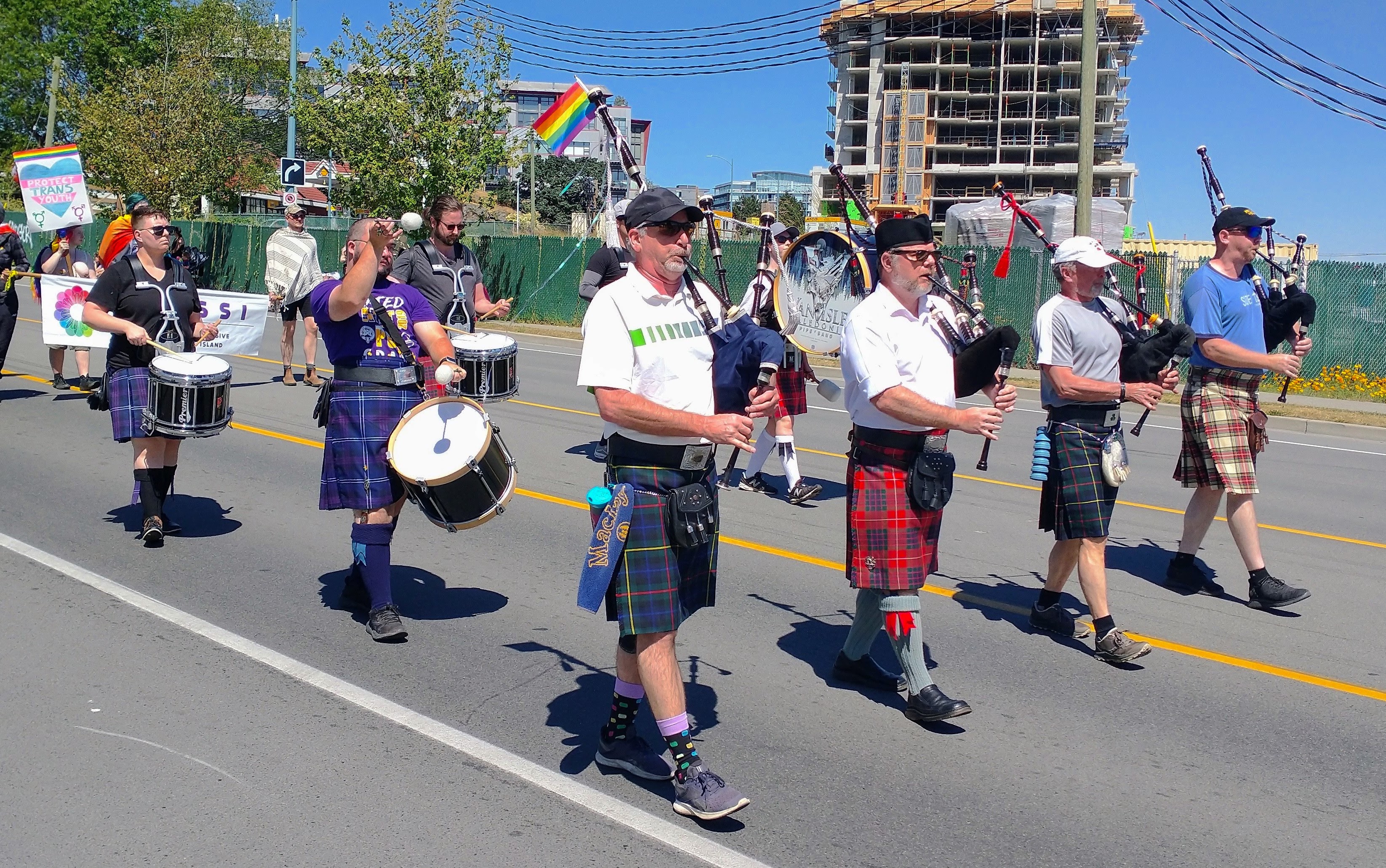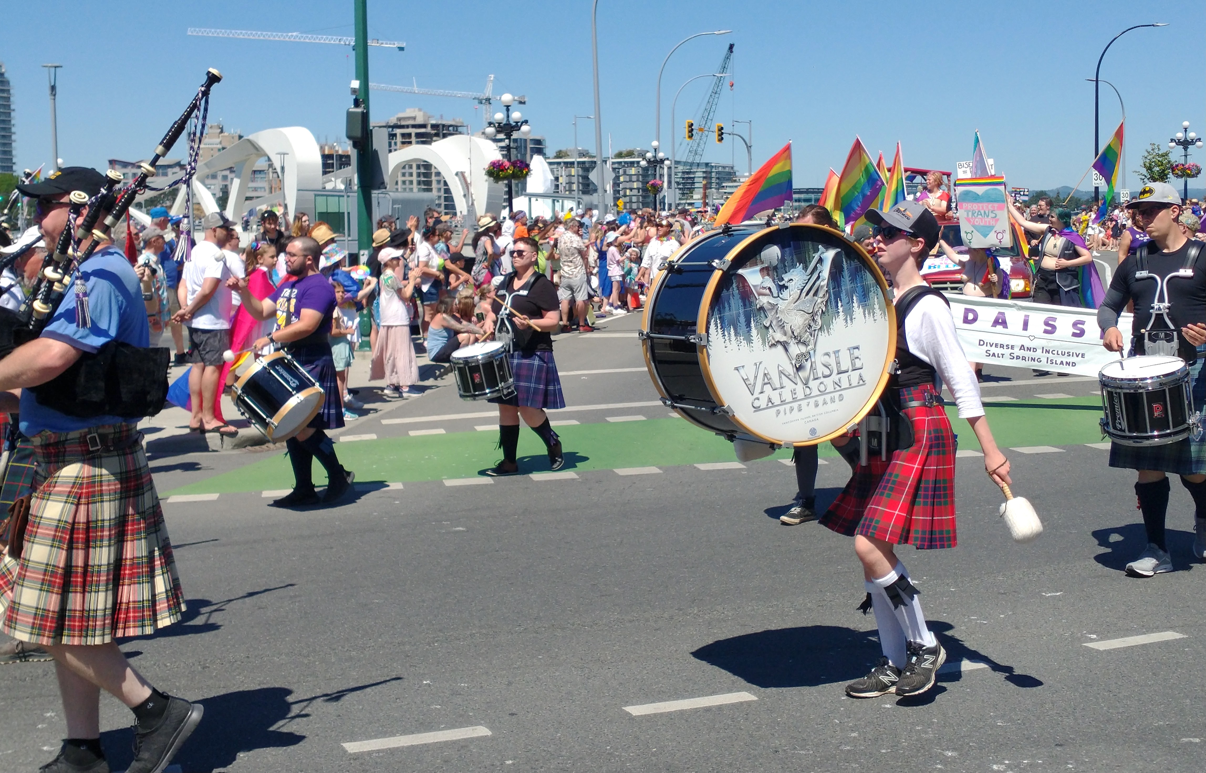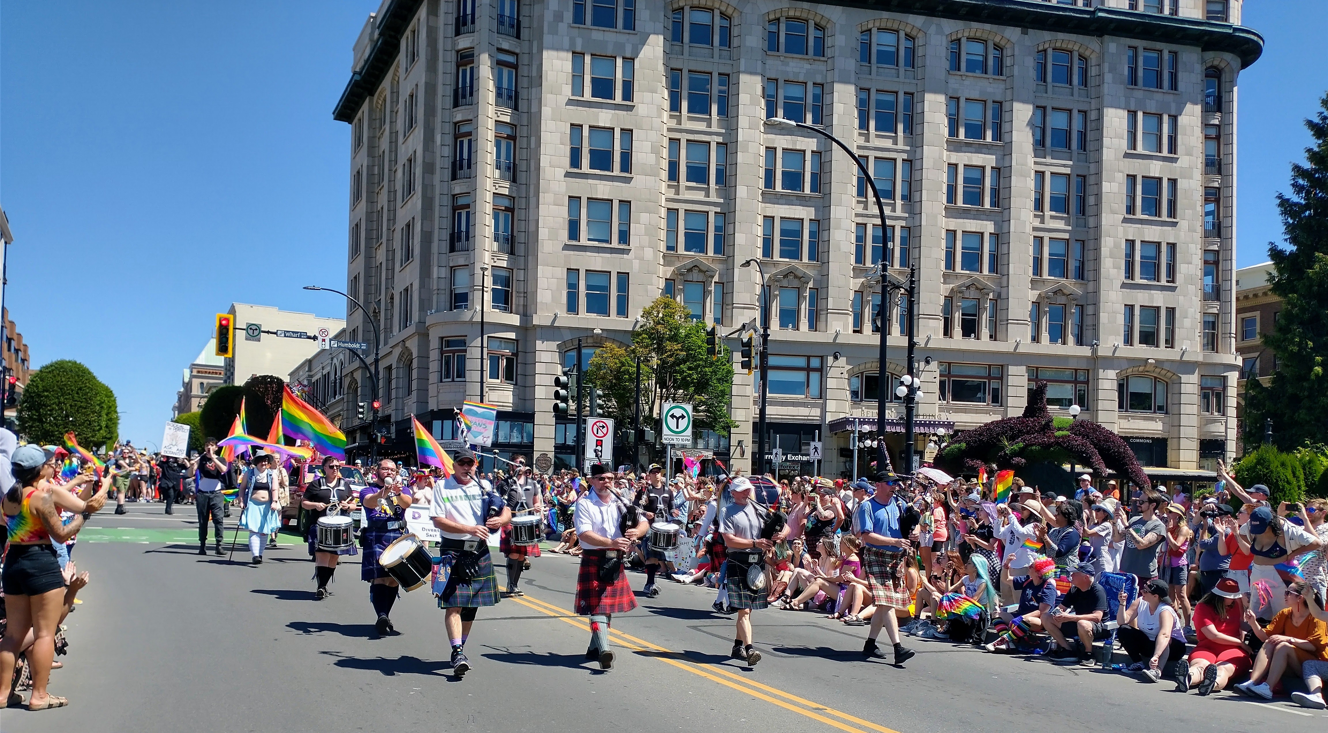 The Victoria pride parade is a celebration and recognition of LGBTQ+ folks and their fight for equality. CCPD happily joined the celebration in informal dress, allowing personal kilts and light clothing to combat Victoria's hot June weather!